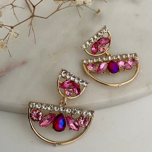 Our earring collection has been carefully selected to complement our hand made couture headwear range. The range of earrings includes bold colorful studs, crystal drop earrings in vibrant blue, green, pink and purple. Embellished with luxe diamantes take your accessory game to a whole new level with a statement stud to a soft floral or a whimsical boho design.