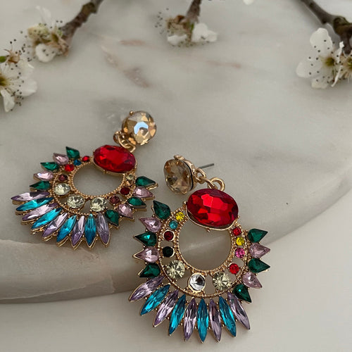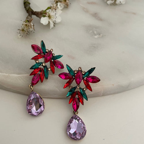 Our earring collection has been carefully selected to complement our hand made couture headwear range. The range of earrings includes bold colorful studs, crystal drop earrings in vibrant blue, green, pink and purple. Embellished with luxe diamantes take your accessory game to a whole new level with a statement stud to a soft floral or a whimsical boho design.